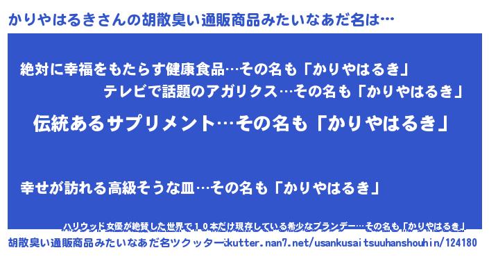 | ヘコむあだ名 | 『かりを』『かりやはるき(笑)』 |