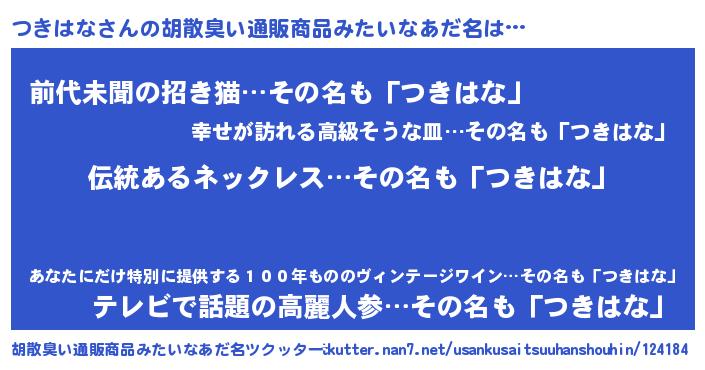 | ヘコむあだ名 | 『つき太郎』『つきはな(笑)』『豆乳』 |