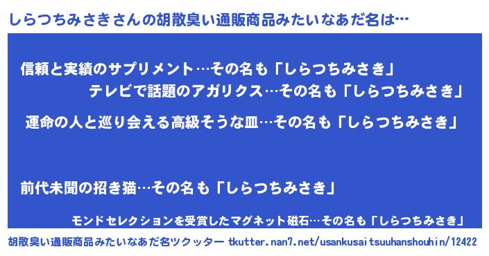 | 欧米人風あだ名 | 『しらつちみさき・ステッグマイヤー』 |