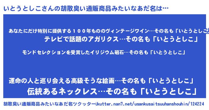| 伝説のあだ名 | 『救世主となる占い師いとうとしこ』 |