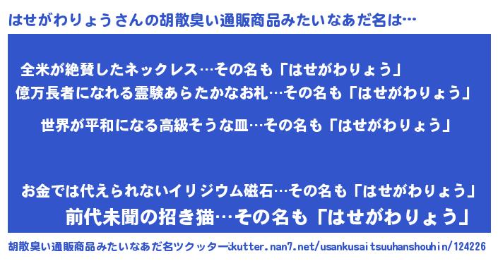 | 肩書あだ名 | 『はせがわりょう国家主席』 |