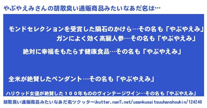 | 男性向けラノベタイトル風あだ名 | 『やぶやえみという概念が存在しない退屈な世界 』 |