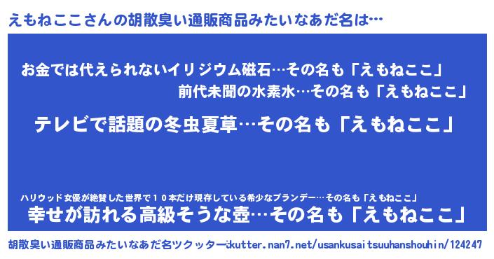 | 意味不明あだ名 | 『自称えもねここ』『永久保存えもねここ』 |