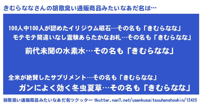 | 意味不明あだ名 | 『永久保存きむらなな』『自称きむらなな』 |
