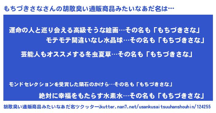 | 女子向けラノベタイトル風あだ名 | 『もちづきさなストレイドッグス』 |