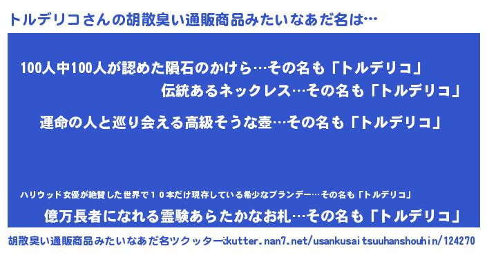| ファンタジー風あだ名 | 『エターナルトルデリコー』『トルフェル』 |