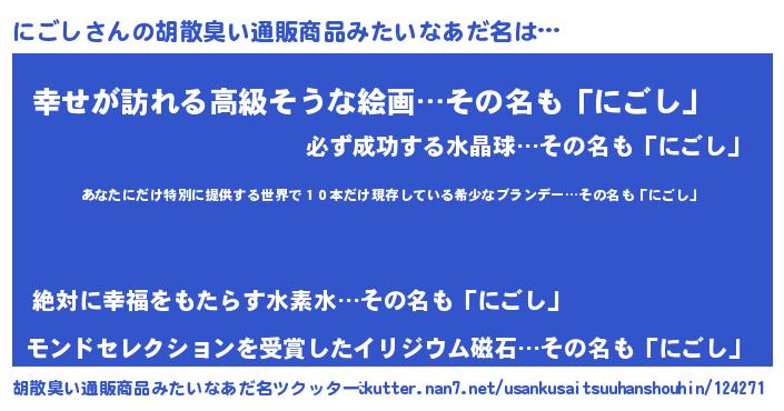 | ヘコむあだ名 | 『酢こんぶ』『にごにー』『にごっ子』 |