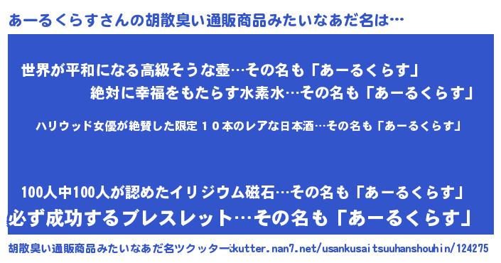 | 意味不明あだ名 | 『住所不定無職あーるくらす(43歳)』 |