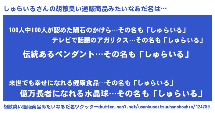 | 意味不明あだ名 | 『とにかく怪しいしゅらいる』 |