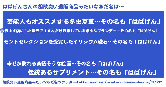 | 欧米人風あだ名 | 『アンジェラ・はばげん』 |