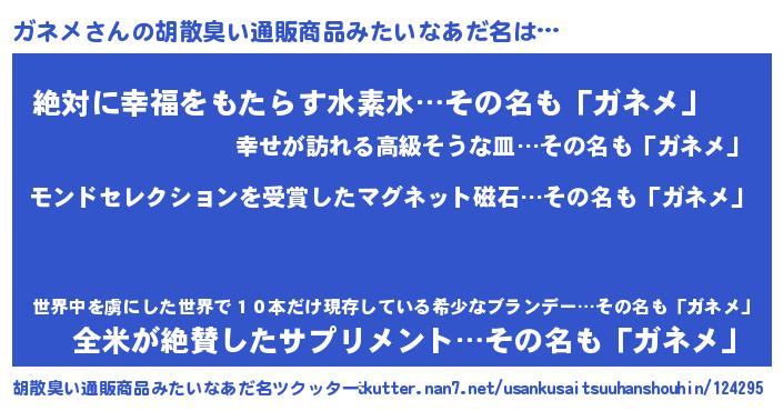 | ヒーロー風カッコイイあだ名 | 『慈愛の使者ガネメ』『ネオガネメ』 |
