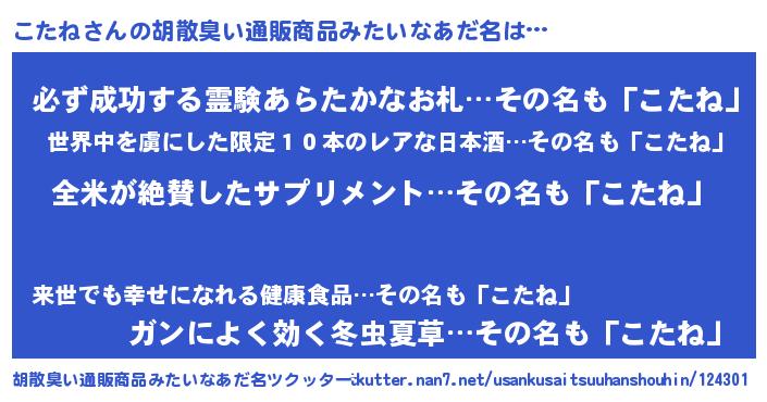 | 意味不明あだ名 | 『ヨモギ科こたね属』『ペロリンこたね』 |