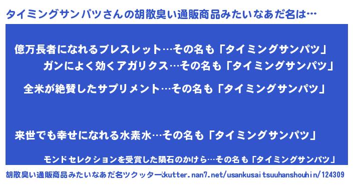 | 意味不明あだ名 | 『とにかく怪しいタイミングサンパツ』 |