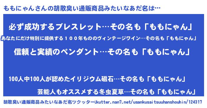 | 意味不明あだ名 | 『とにかく怪しいももにゃん』 |