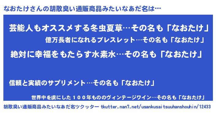 なおたけさんの胡散臭い通販商品みたいなあだ名をツクッター!
