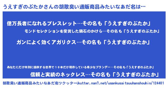 | 男性向けラノベタイトル風あだ名 | 『ウエスギノブタカスレイヤー』 |