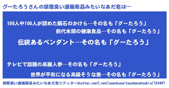 | ヒーロー風カッコイイあだ名 | 『魔戒騎士グー』『正義の使者グーたろう』 |