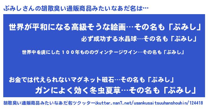 | ヘコむあだ名 | 『豆乳』『ぷみもー』『ぷみし(笑)』 |