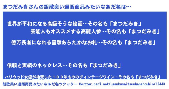 | 肩書あだ名 | 『まつだみき御曹司』『まつだみき中佐』 |