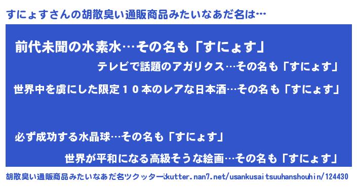 | 意味不明あだ名 | 『住所不定無職すにょす(50歳)』 |