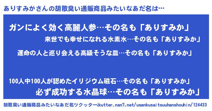| 意味不明あだ名 | 『ありすみかフォーエバー』 |