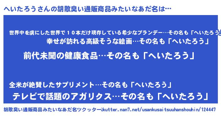 | 意味不明あだ名 | 『永久保存へいたろう』『自称へいたろう』 |