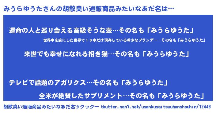 | 意味不明あだ名 | 『永久保存みうらゆうた』 |