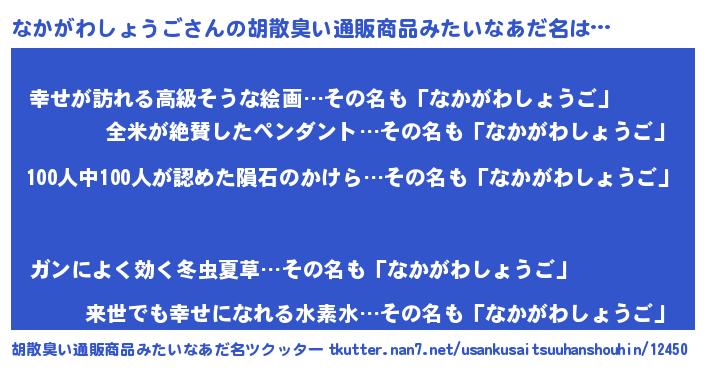 | 肩書あだ名 | 『なかがわしょうご中将』 |