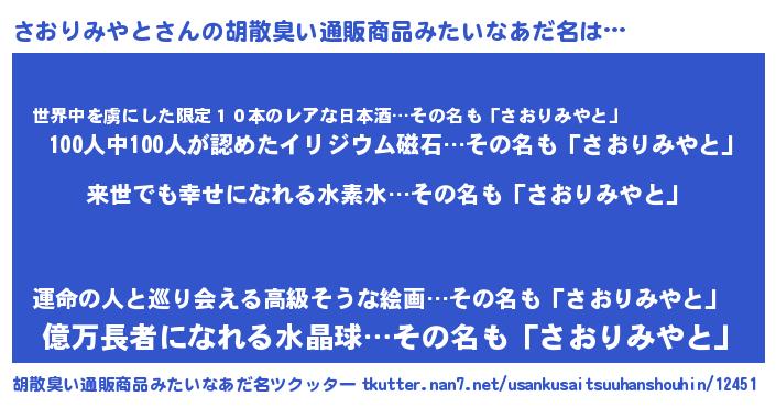 | 意味不明あだ名 | 『永久保存さおりみやと』 |