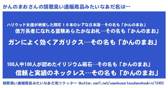 | 意味不明あだ名 | 『自称かんのまお』『ペロリンかんのまお』 |