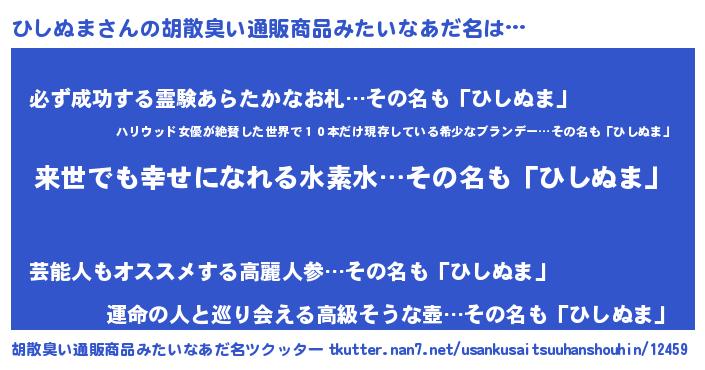 ヘコむあだ名 | 『ひしぬま(遠い目)』『ひしっふぃ~』 |