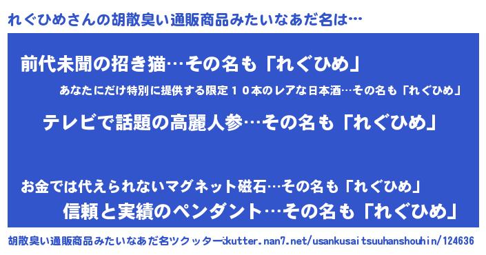 | 料理風あだ名 | 『れぐひめごはん』 |