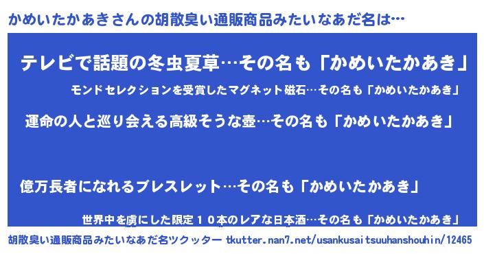 | 意味不明あだ名 | 『かめいたかあきフォーエバー』 |