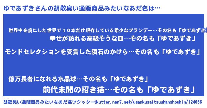 | ヒーロー風カッコイイあだ名 | 『慈愛の使者ゆであずき』『仮面ユデダー』 |