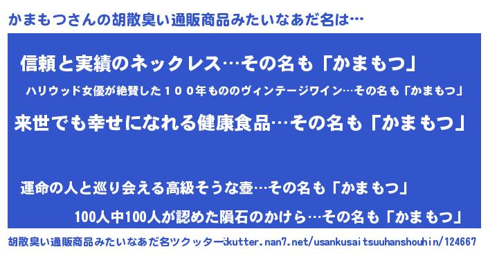 | ヘコむあだ名 | 『かまもつ(笑)』『かま太郎』 |