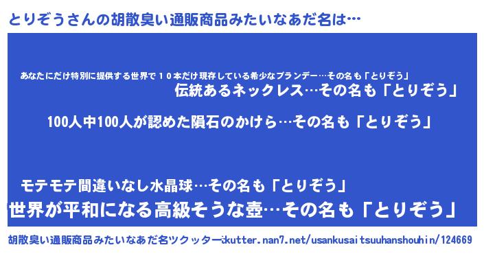| ヒーロー風カッコイイあだ名 | 『友情の使者とりぞう』『仮面トリダー』 |