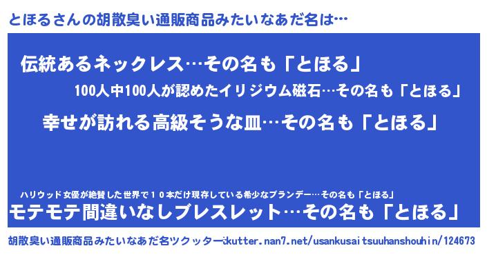 | ヒーロー風カッコイイあだ名 | 『ウルトラとほるマン』『魔戒騎士トホ』 |
