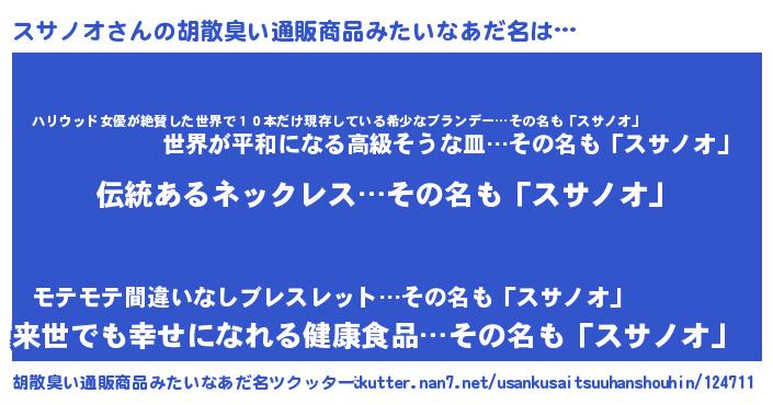 | ヘコむあだ名 | 『スサっ子』『スサノオ(苦笑)』 |