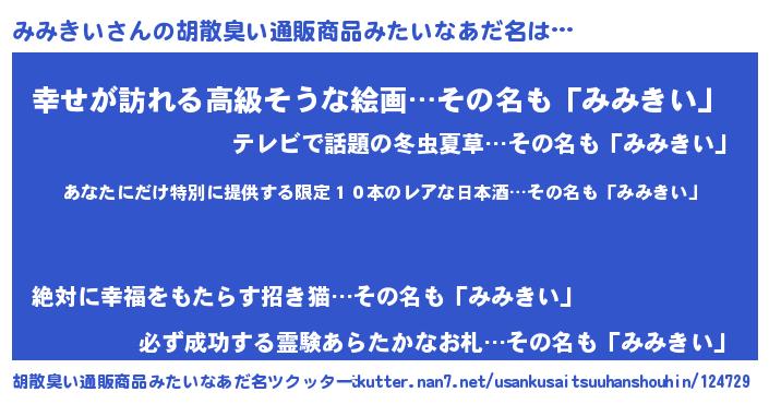 | ヘコむあだ名 | 『酢こんぶ』『みみにー』『みみを』 |