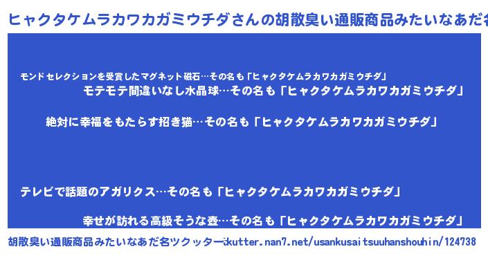 | ヘコむあだ名 | 『ヒャクタケムラカワカガミウチダ(笑)』 |