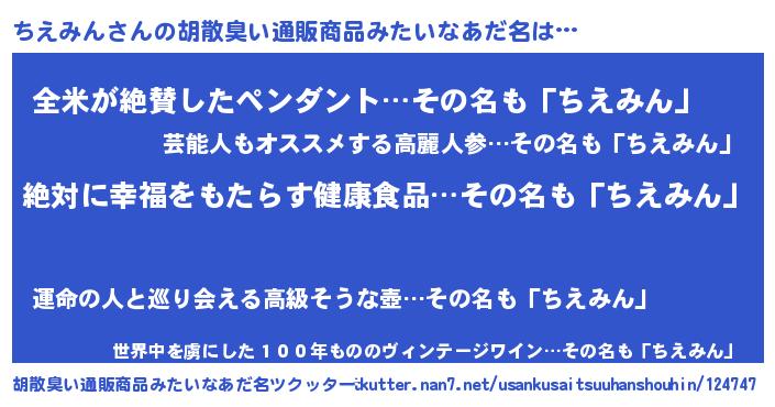 | 意味不明あだ名 | 『永久保存ちえみん』『自称ちえみん』 |