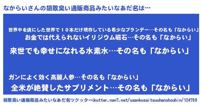 | ヘコむあだ名 | 『なからい(遠い目)』『なかぷりん』 |