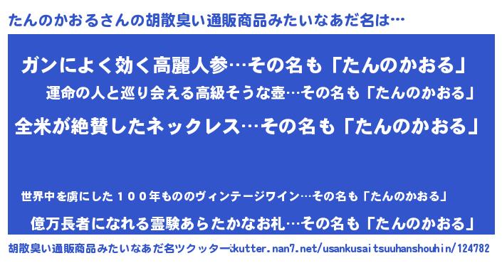 | 女子向けラノベタイトル風あだ名 | 『たんのかおる様がみてる』 |