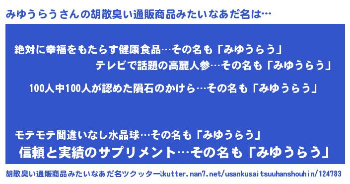 | ヘコむあだ名 | 『みゆうらう(震え声)』『みゆっ子』 |