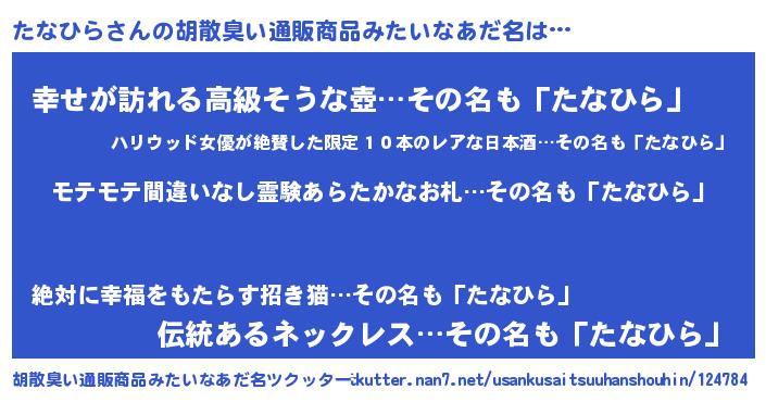 | 意味不明あだ名 | 『ペロリンたなひら』『永久保存たなひら』 |