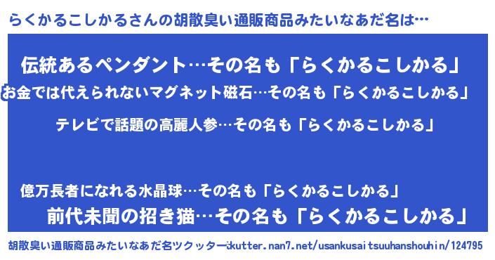 | ヒーロー風カッコイイあだ名 | 『サイバー戦士ラクカルコシカル』 |