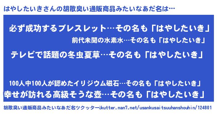 | 意味不明あだ名 | 『自称はやしたいき』 |