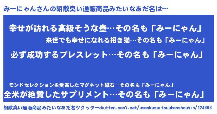 | 欧米人風あだ名 | 『マイケルみーにゃん』 |