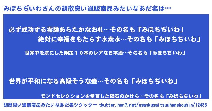 | 意味不明あだ名 | 『住所不定無職みほちぢいわ(40歳)』 |