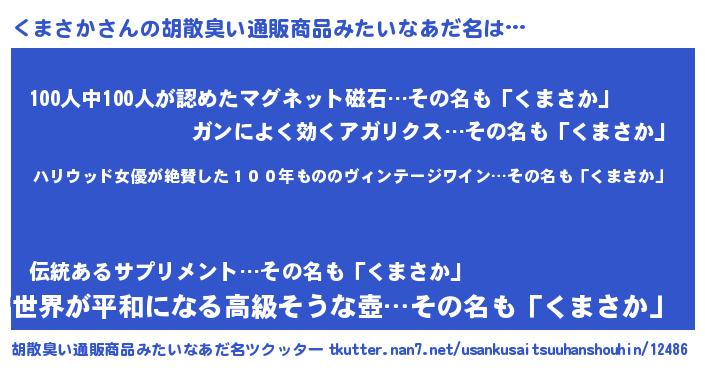 | 意味不明あだ名 | 『住所不定無職くまさか(6歳)』 |